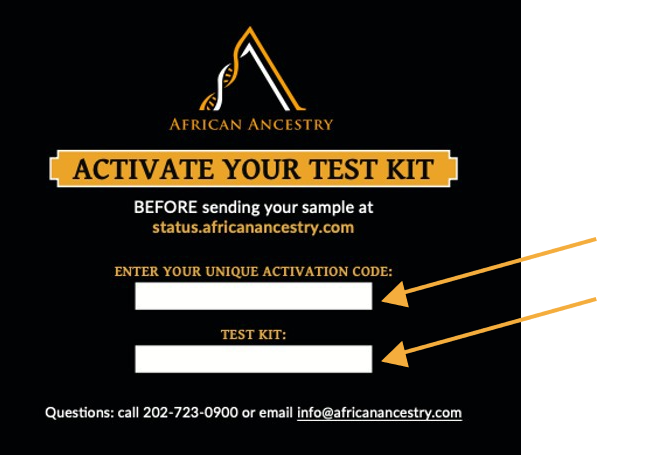 Step 1: Enter the information from the Test Kit Activation Card included in your MatriClan Test or PatriClan Test.